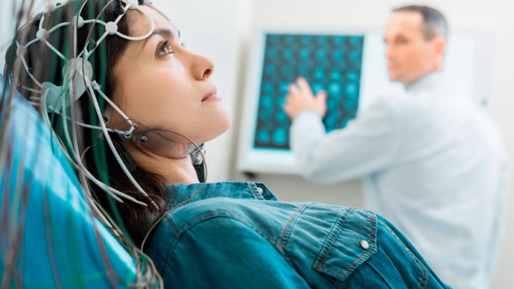 El estudio se realiza colocando electrodos especiales en la superficie del cuero cabelludo del cráneo.